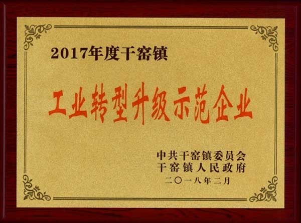 熱烈祝賀公司榮獲2017年度干窯鎮“工業轉型升級示范企業”