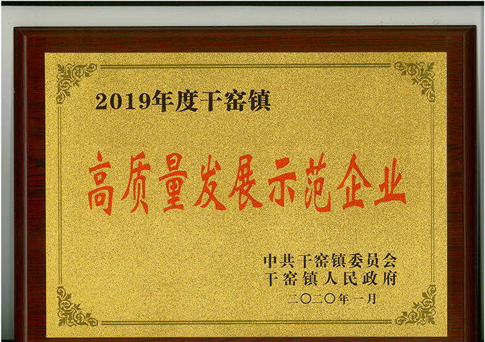 熱烈祝賀公司榮獲2019年度干窯鎮“高質量發展示范企業”