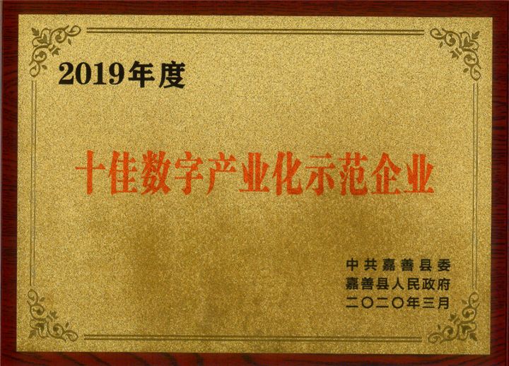 熱烈祝賀公司榮獲2019年度“十佳數字產業化示范企業”