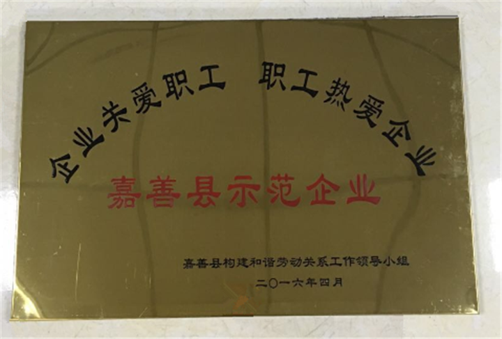 熱烈祝賀公司榮獲“‘企業關愛職工,職工熱愛企業’嘉善縣示范企業”