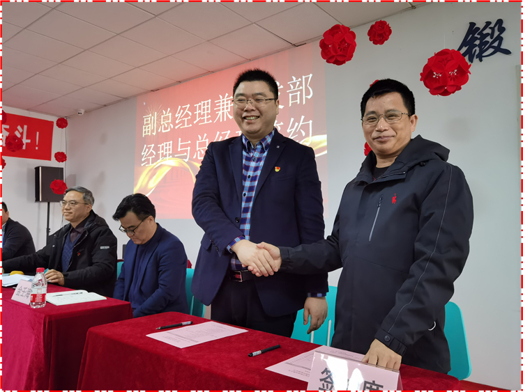 會上,根據公司2022年經營目標任務的分解和部署,總經理王德瑜同志與各部門負責人分別簽訂了《2022年度公司經營目標責任書》。簽約儀式完成后,總公司市場部主管孟艷艷同志、副總經理兼研發部經理吉祥書同志、總經理助理兼采購部負責人徐正保同志、生產計劃部經理夏杏軍同志、品質部經理熊小波同志、財務部經理朱婷紅同志分別作表態發言,鄭重承諾將全力以赴完成2022年本部門各項經營目標。