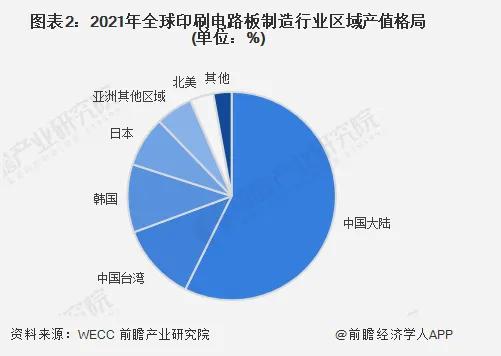 PCB行業是全球電子元件細分產業中產值占比最大的產業,美洲、歐洲、日本三大地區起步早,2000年以前占據全球PCB生產70%以上的產值。但近20年來,憑借亞洲尤其是中國在勞動力、資源、政策、產業聚集等方面的優勢,全球電子制造業產能向中國大陸、中國臺灣和韓國等亞洲地區轉移,中國大陸自2006年開始超越日本成為全球第一。
