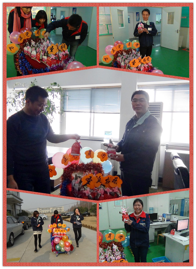 這是浙江萬正電子科技有限公司團委正在給全體團員、黨員派送圣誕小禮物:平安果和巧克力——預(yù)祝大家生活平平安安、甜甜蜜蜜。一個個紅色的或粉色的小禮盒,讓大家滿心歡喜。手拿一個個小禮盒,團員、黨員都露出了喜悅的笑容。