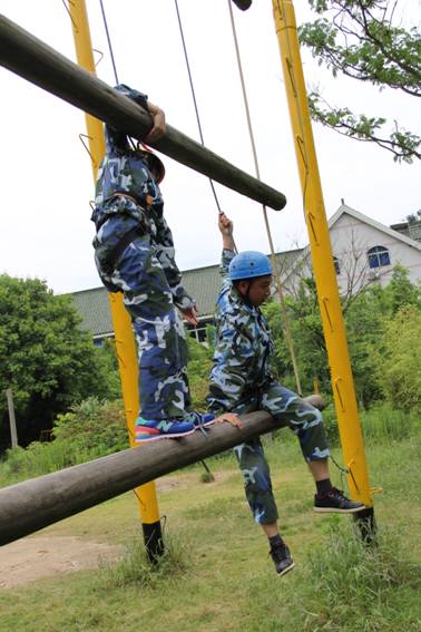 在訓(xùn)練場(chǎng)上,我們不分年齡,不分工作的職務(wù),訓(xùn)練分兩組,一組為“突擊隊(duì)”,二組為“野狼隊(duì)”,我很榮幸的加入了野狼隊(duì)中,在隊(duì)長及隊(duì)花的帶領(lǐng)下,我們高唱隊(duì)歌“相信自己”開始了一天的訓(xùn)練。整個(gè)訓(xùn)練感觸最深,最想與大家分享的有三個(gè)項(xiàng)目為:天梯,雷區(qū),盲人方陣。