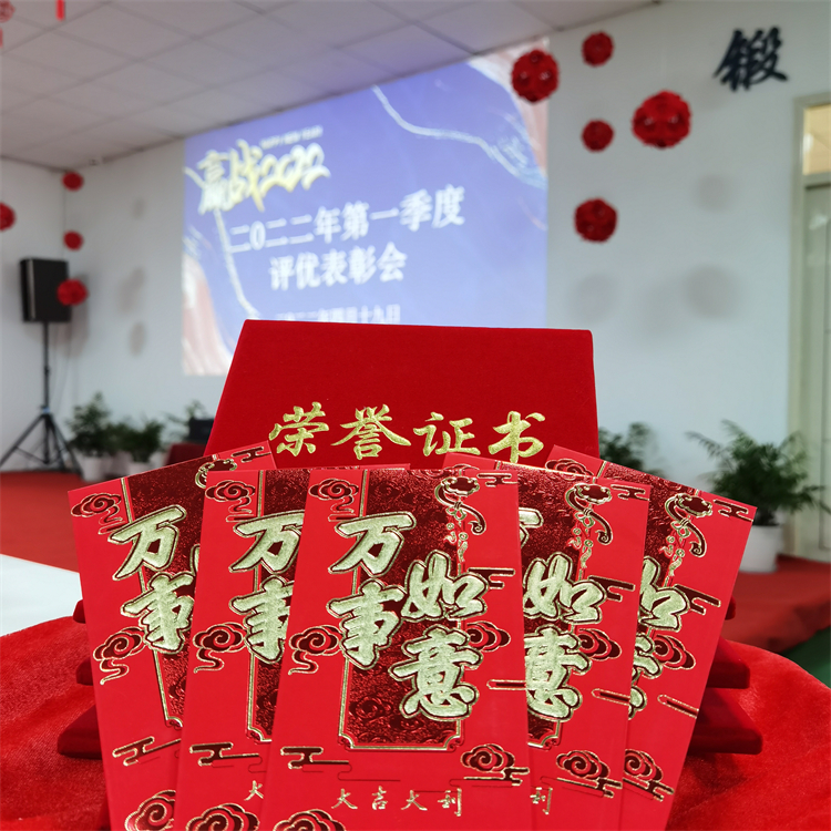 二O二二年四月十九日上午八時(shí),公司培訓(xùn)室內(nèi)隆重舉行“二O二二年第一季度評(píng)優(yōu)表彰會(huì)”。表彰會(huì)由行政部經(jīng)理葉秀華同志主持,公司組長以上人員和受表彰人員參加,公司總經(jīng)理王德瑜同志、董事長秘書兼財(cái)務(wù)總監(jiān)朱建忠同志、上市辦主任邵嘯同志等領(lǐng)導(dǎo)蒞臨現(xiàn)場。