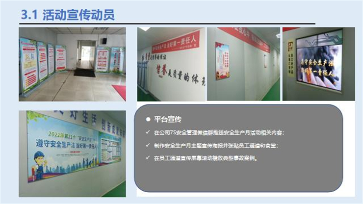 本次安全月活動中,安環部圍繞安全月主題策劃了多項活動,制作安全月宣傳海報張貼,通過微信平臺推送安全月活動相關內容,在員工通道大屏上滾動播放典型事故案例,組織重點崗位人員參加百萬員工大培訓線上線下學習,組織全員下載鏈工寶參加“新安法知多少”全國安全生產月知識競賽活動,組織全員參與安全隱患排查活動、組織內部員工安全知識競賽活動、開展“我為安全獻一計”活動和化學品應急救援演練等,并為活動準備了豐富的獎品。